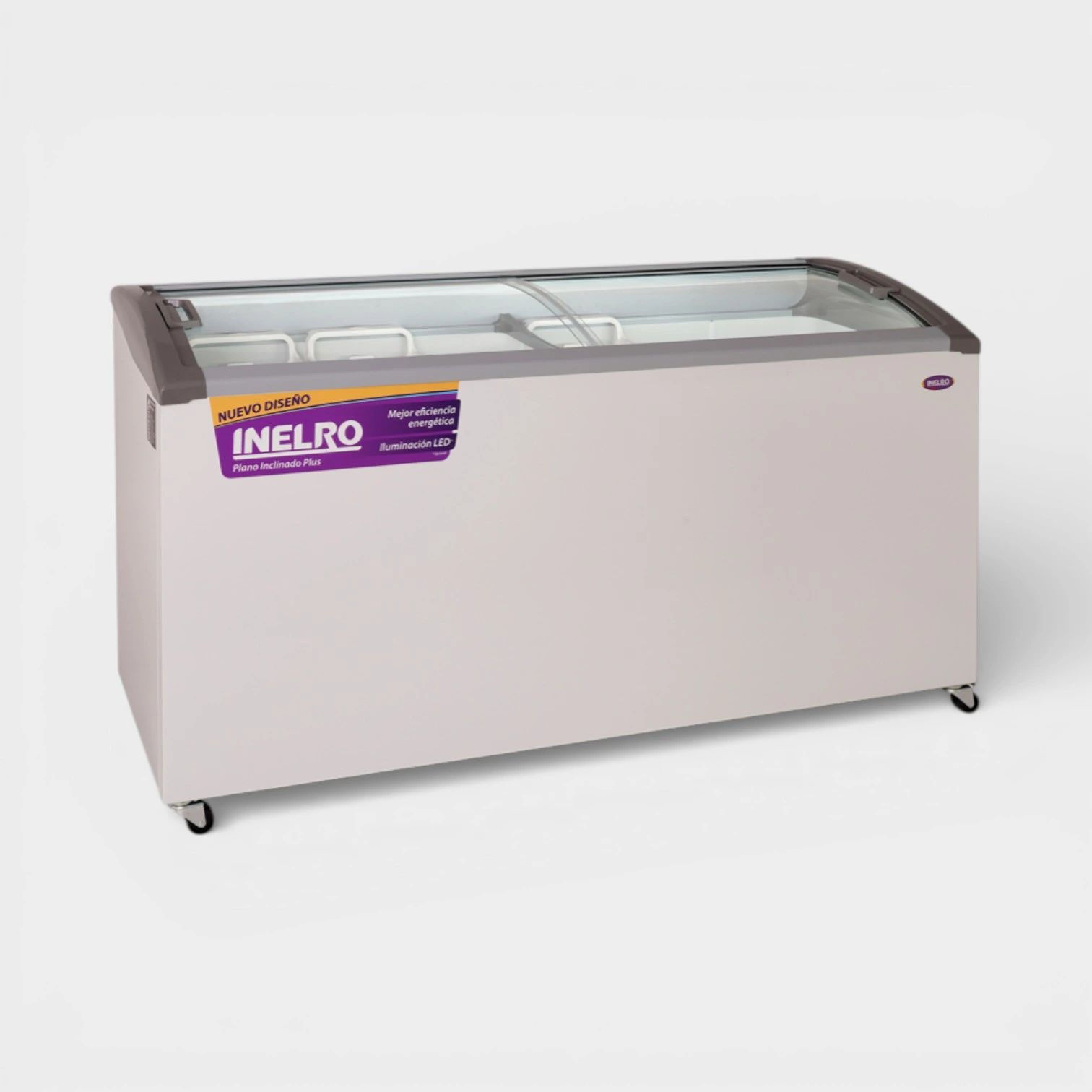 El exhibidor horizontal Inelro FIH‑400 PI Plus dispone de tapa de vidrio curvo y plano inclinado para exhibir productos de manera óptima. Con capacidad de 279 L y dos canastos de plástico, ofrece amplio espacio de almacenamiento. Usa refrigerante R290, luz LED y ruedas dobles, ideal para comercios que necesitan exhibir y conservar bebidas o alimentos. • Tipo: exhibidor horizontal con tapa de vidrio curvo y plano inclinado