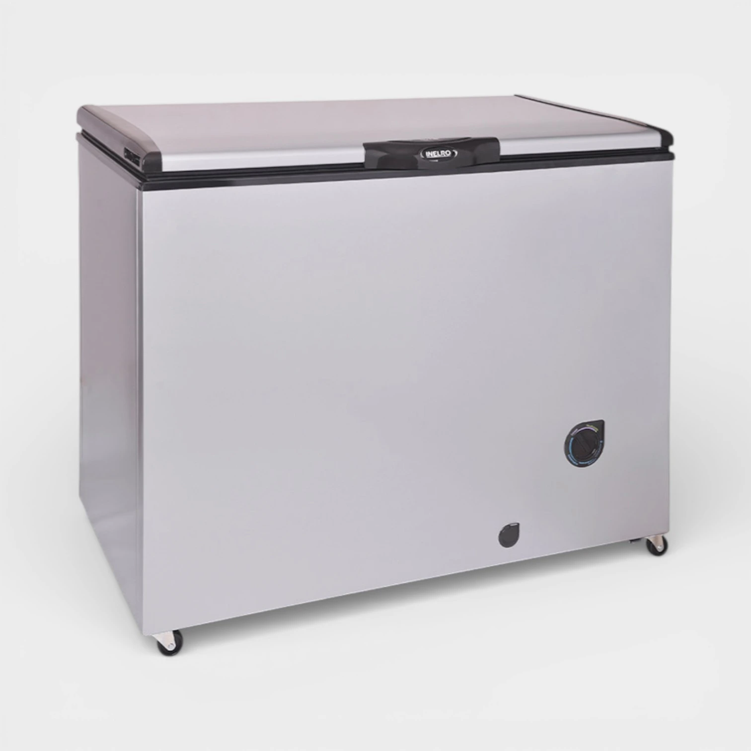 Con iguales características al modelo FIH‑350 A++, el FIH‑350 P++ Bi‑Volt añade un exterior gris plata elegante. Sus 280 litros de capacidad, compresor inverter y opción de doble tensión lo convierten en un aliado versátil para el hogar o comercio. Incluye dos canastos, ruedas de alta resistencia y desagote frontal. La tecnología inverter y el refrigerante R600a logran un bajo consumo y clasifi cación energética A++. • Especificaciones técnicas idénticas al FIH‑350 A++
