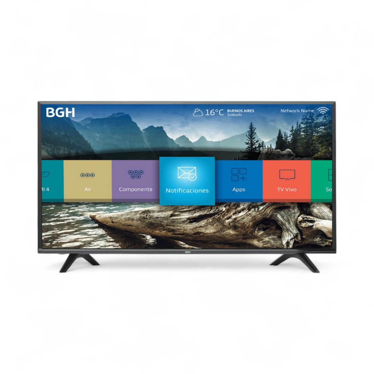 Smart TV Full HD 43″ (1920×1080), sistema Android TV (con apps YouTube, Netflix), 2× HDMI (1.4 AR C), 2× USB, conectividad Wi‑Fi, Bluetooth, sintonizador digital con función PVR y Timeshift. Dimensiones: alto 56 cm, ancho 96 cm, profundidad 8 cm (20 cm con base). Incluye control remoto. Diseñado para ofrecer una experiencia envolvente, SMARTV BGH 43″ (B4322FS5A) CON ANDROID transforma cada reunión en un momento inolvidable.